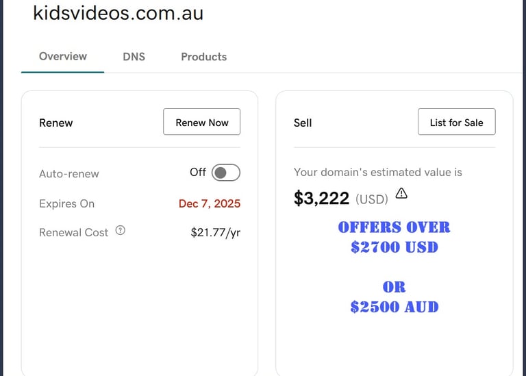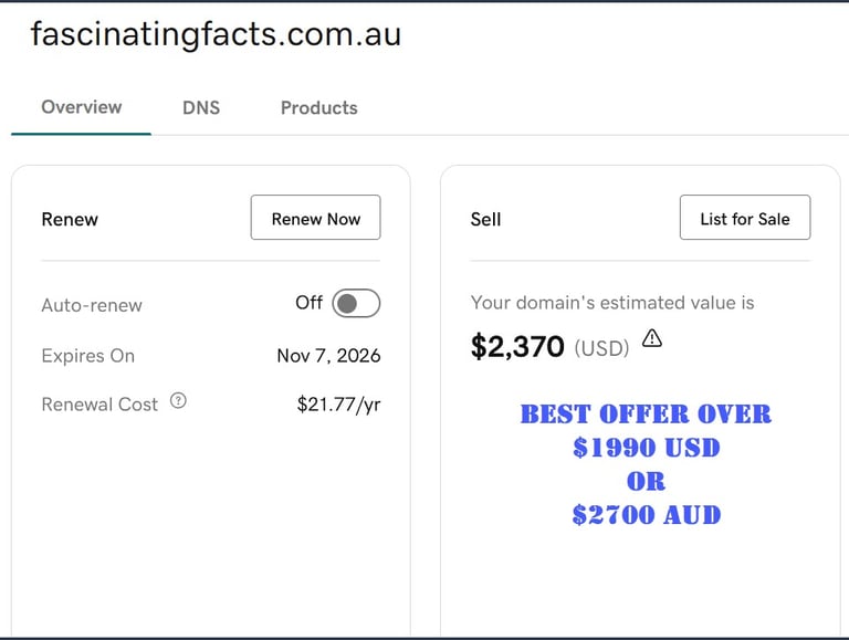 Official Godaddy Valuations are included - And we accept Offers BELOW these Valuations - But be quick!