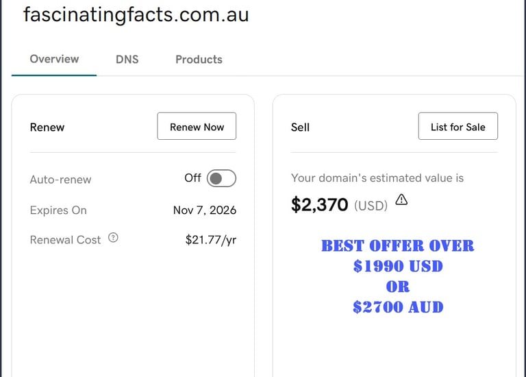 Simply choose a domain and email terry.aust@gmail.com with an Offer!